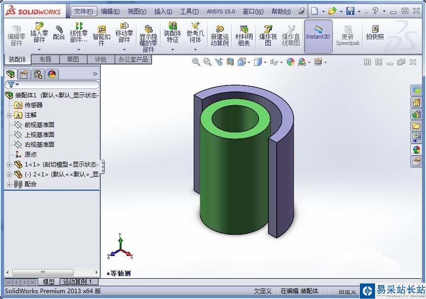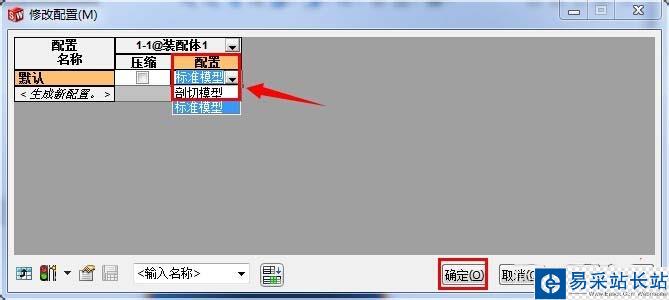 7、在“修改配置”對話框中找到“配置”欄,單擊“剖切模型”,然后點擊確定,則裝配體的顯示就達到了我們想要的剖視效果。同樣的方法可以切換到未剖切的狀態。