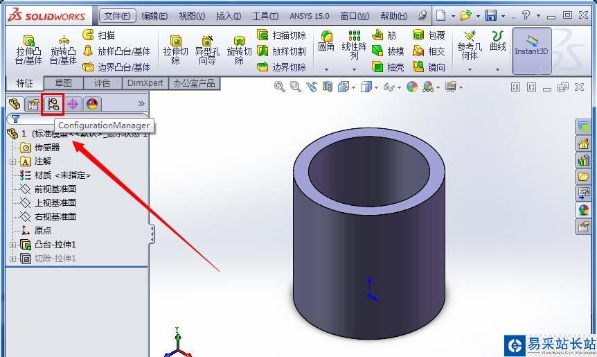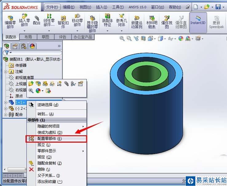 6、選中要剖切的零件(即剛剛進行操作的零件)并右鍵單擊,在彈出的對話框中左鍵單擊“配置零件”;