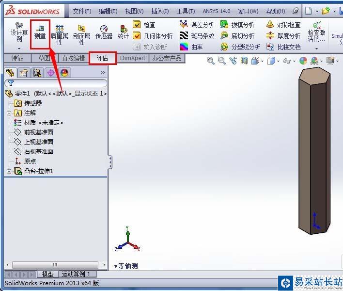 1、點擊“評估”欄里的“測量”,激活“測量”工具。