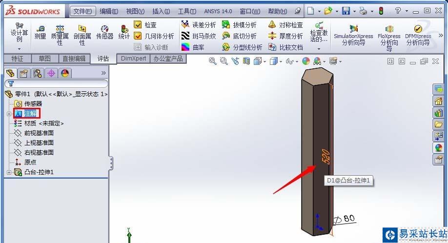 主要介紹在SolidWorks中查看模型的尺寸的方法。