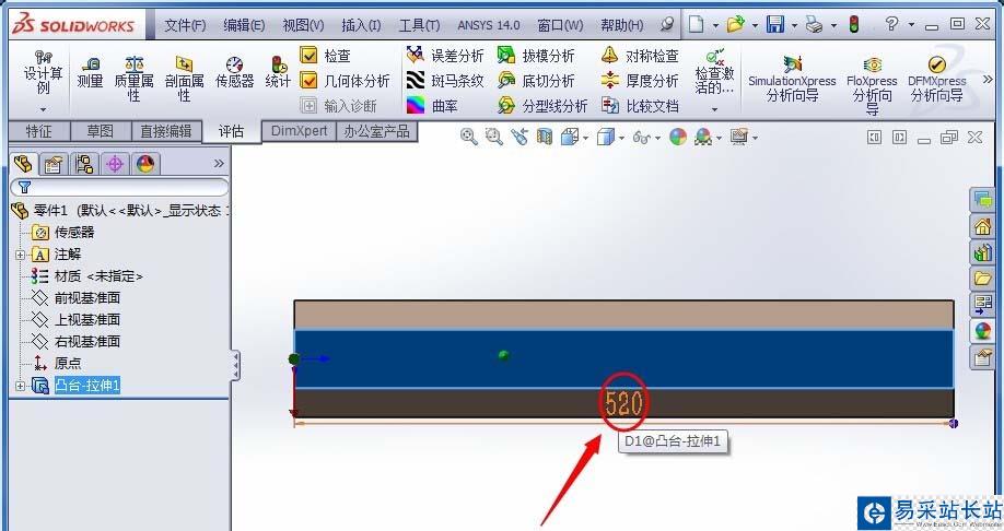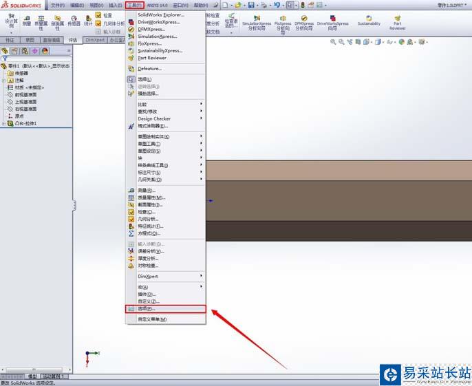 在SolidWorks中,通過點擊特征來查看相關尺寸或者在草圖中進行尺寸標注時,軟件默認的尺寸文本字體較小,下面簡要介紹一下修改SolidWorks模型尺寸文本的字體與字號的方法。