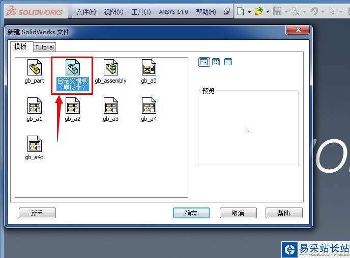 6、按照以上方法進行的設置只對該零件有效,如果要使之對任意零件有效,可以按照以上的方法在自定義的模板里進行設置并保存。對于如何添加自定義模板,可以參照相關經驗進行操作。