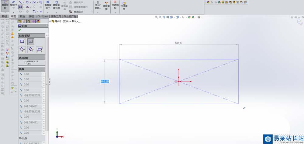 2、按Ctrl+1(切換到前視基準面),畫一個矩形。