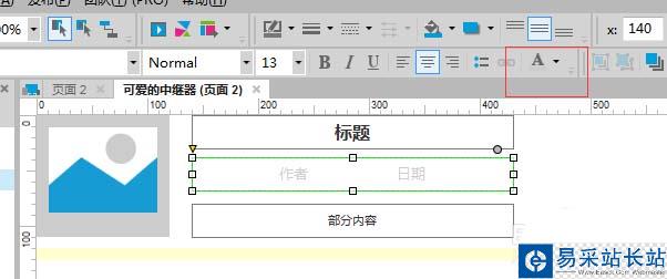 2、對于整體布局來講內容與格式必不可少,我們需要對每個矩形內的文字大小以及是否加粗做出調整,比如對標題矩形進行字體加粗,字號加大處理,對作者日期矩形做出字體顏色調整,對文章內容矩形調整文字大小