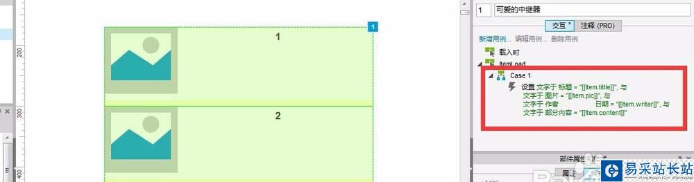 6、之后修改中繼器的載入方法,對每個矩形進行賦值操作,作為分割線的矩形無需賦值。