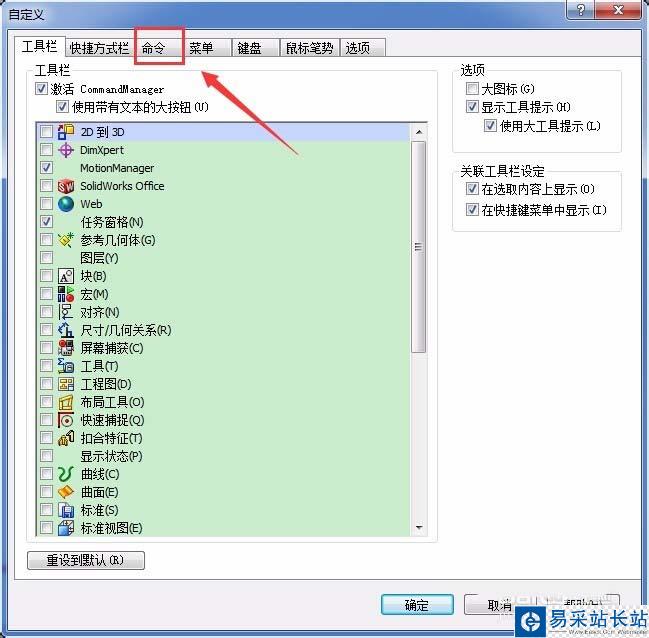 3、在“命令”的內(nèi)容中,選擇“裝配體”