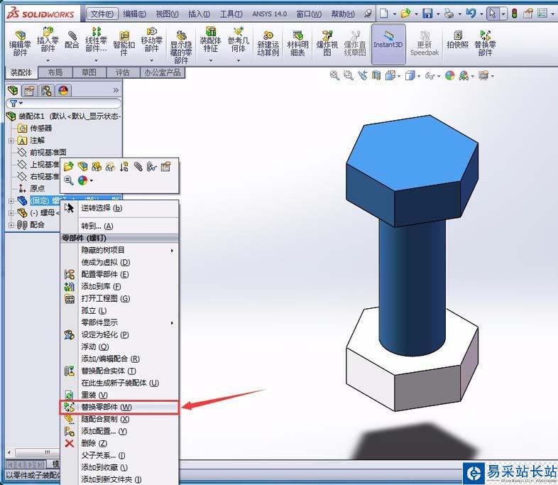 在模型樹中右鍵單擊需要被替換的零部件,在彈出的對話框中選擇“替換零部件”,然后選擇硬盤上的零部件作為新的零部件即可。