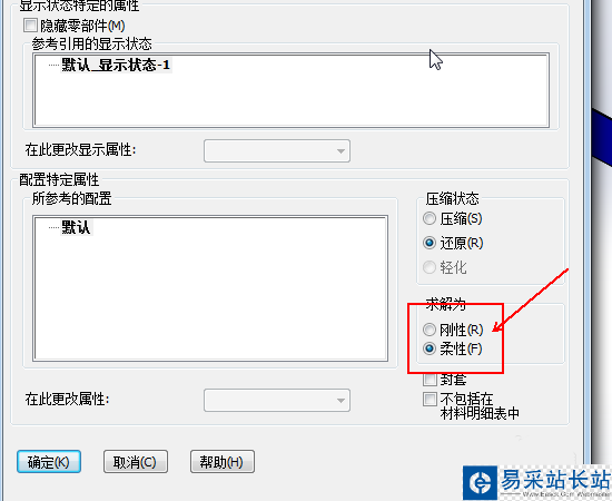 10、將裝配體的屬性由“剛性”改為“柔性”。這樣就設(shè)置完畢,液壓缸在裝配體中可以實(shí)現(xiàn)推進(jìn)運(yùn)動(dòng)了。