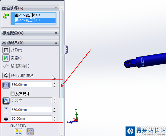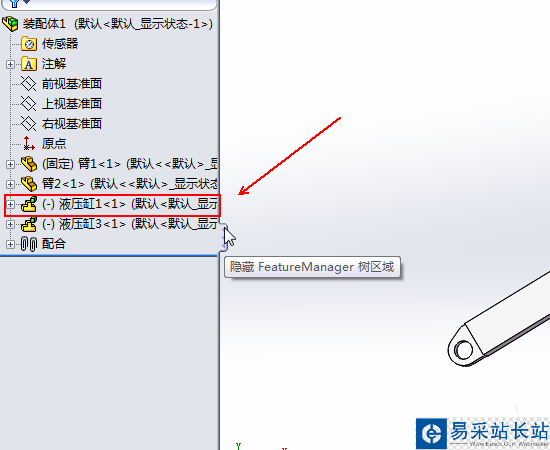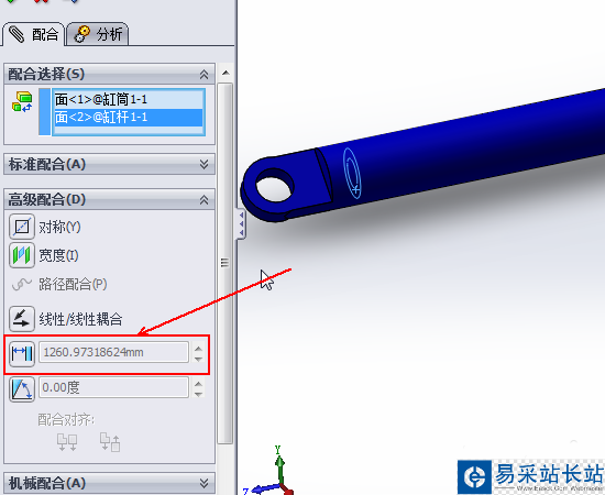7、設(shè)置完成后確定,保存為裝配體。在需要安裝油缸的裝配體中插入油缸的裝配體。