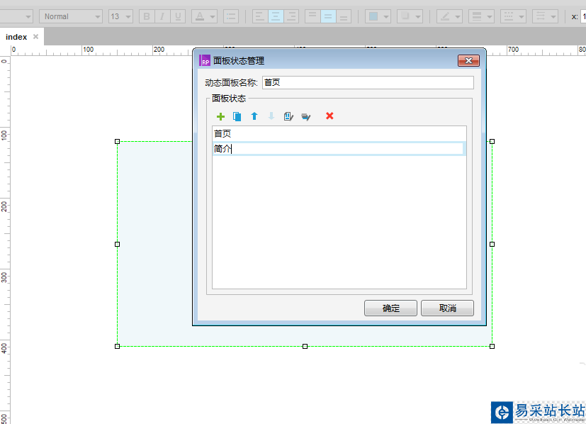 3、選中該動(dòng)態(tài)面板,雙擊它打開面板狀態(tài)管理窗口,設(shè)置兩個(gè)面板狀態(tài),如下圖所示: