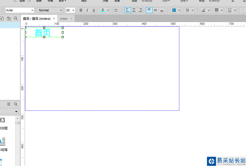 4、打開面板狀態(tài)管理,雙擊“首頁”面板狀態(tài),移動(dòng)一個(gè)文字標(biāo)簽到界面上,修改內(nèi)容,如下圖所示: