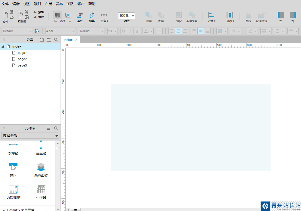 1、雙擊打開Axure RP 8軟件,查看動(dòng)態(tài)面板的位置,如下圖所示: