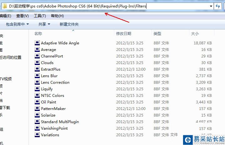 3.去找出你的PS CS6安裝目錄,我的安裝在D盤了(D:/驅(qū)動程序/ps cs6/AdobePhotoshopCS6(64bit)Portable/Required/Plug-Ins/Filters),如果你是默認安裝的話就是在C盤((C:/Program Files (x86)/AdobePhotoshopCS6(64bit)Portable/Required/Plug-Ins/Filters)。進到濾鏡文件夾,把剛才復制的兩個文件粘貼進來。