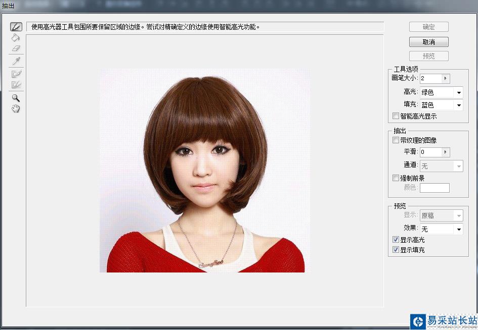 5.在Photoshop CS6菜單欄選擇“濾鏡”-“抽出”命令,就可以打開“抽出”濾鏡對話框了。