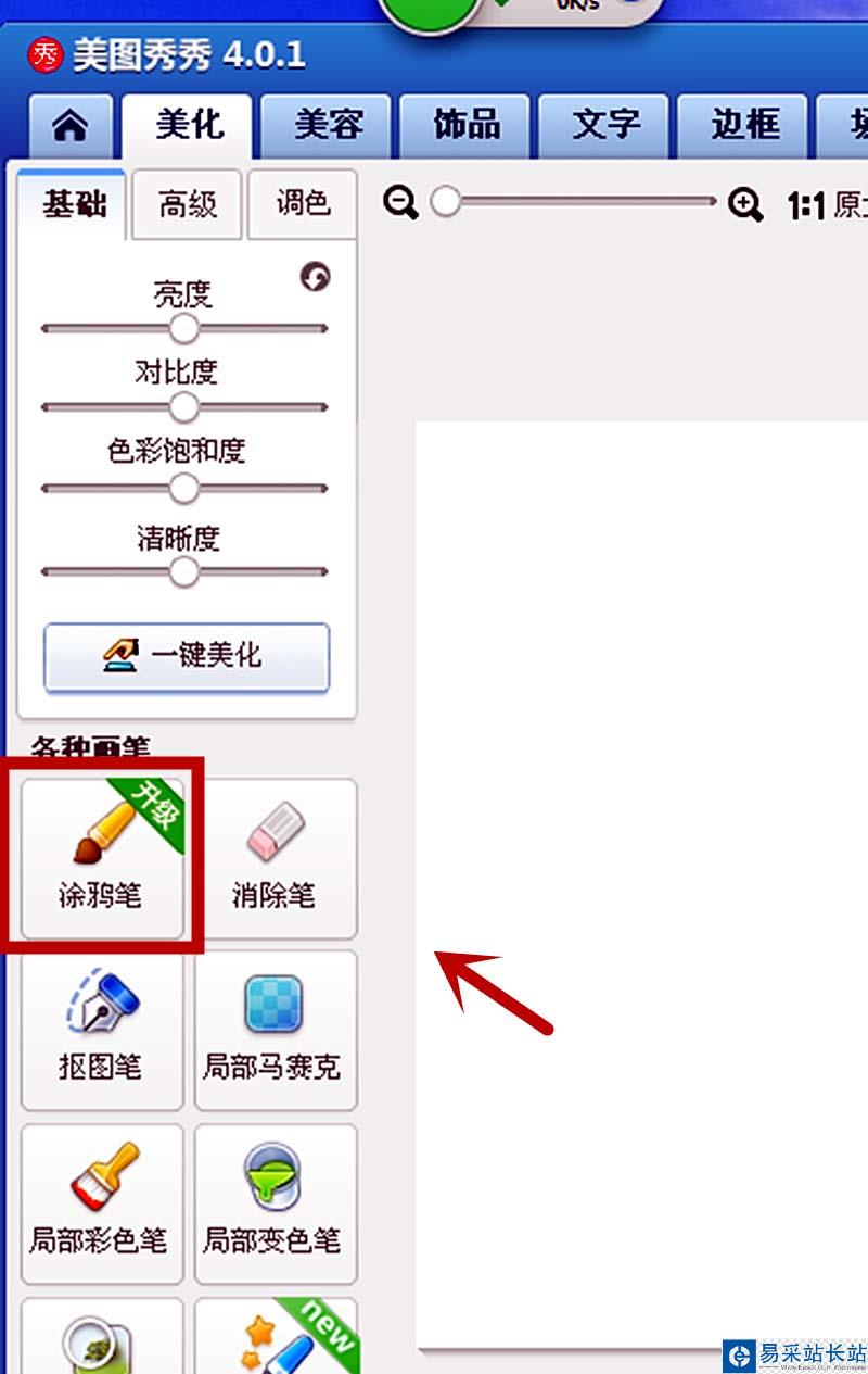 5、在美圖秀秀操作頁面上選擇【美化】下的【涂鴉筆】。