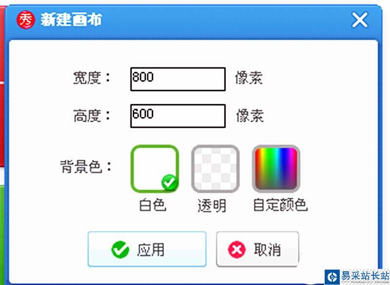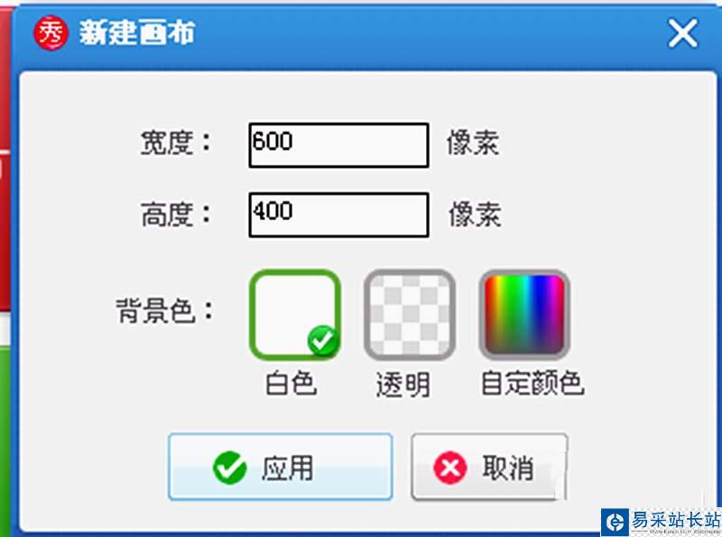 3、在美圖秀秀操作頁面上出現【新建畫布】,在【新建畫布】中設置畫布的高度和寬度。點擊應用。