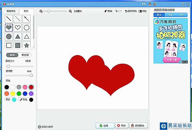 美圖秀秀是一款的免費軟件。具有強大的圖像編輯工具,能快速制作出好品質的圖片效果,下面介紹用美圖秀秀如何繪制心心相印圖片?