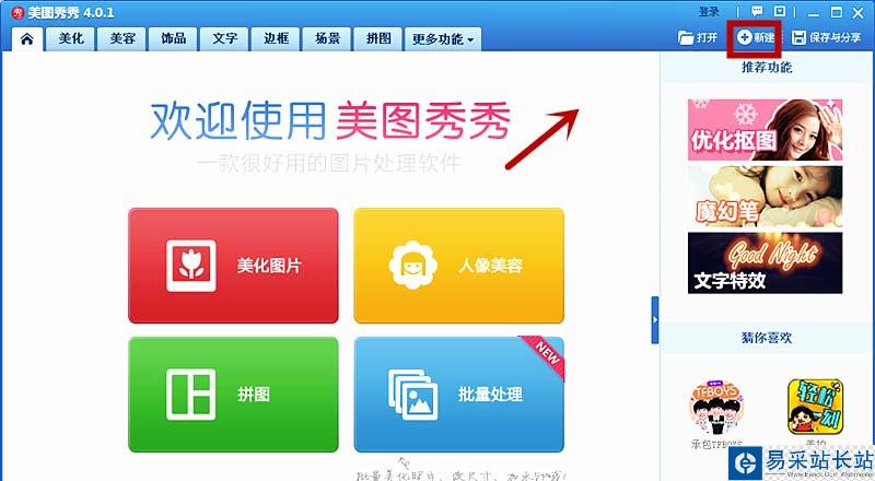 2、在美圖秀秀操作頁面上,點擊【新建】。