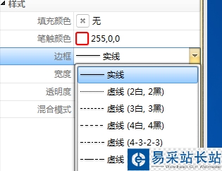 5、在線條工具屬性中,我們可以看到如邊框的設定中,有虛線條和實線條種種的樣式設定。