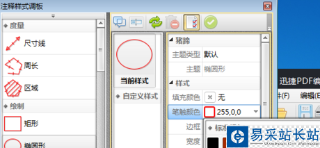 3、選擇完添加橢圓形工具后,可以在PDF文件頁面右側出現橢圓形工具屬性的頁面內容,我們可以在次對橢圓形的樣式等進行設定。