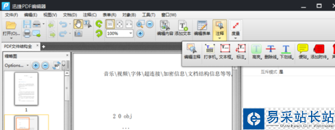 2、我們可以在相關的PDF文件編輯器中找到工具欄,在工具欄中找到注釋工具,點擊注釋工具,在下拉工具菜單中選擇添加橢圓形工具。