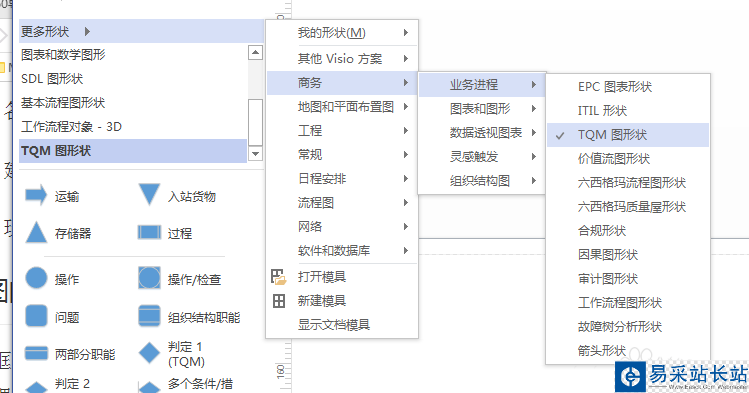 3、繪制烏龜的頭部,即”輸入”,輸入是分析過程中的關鍵,一定要識別清楚,找到”TQM”圖,更多形狀/商務/業務進程/TQM