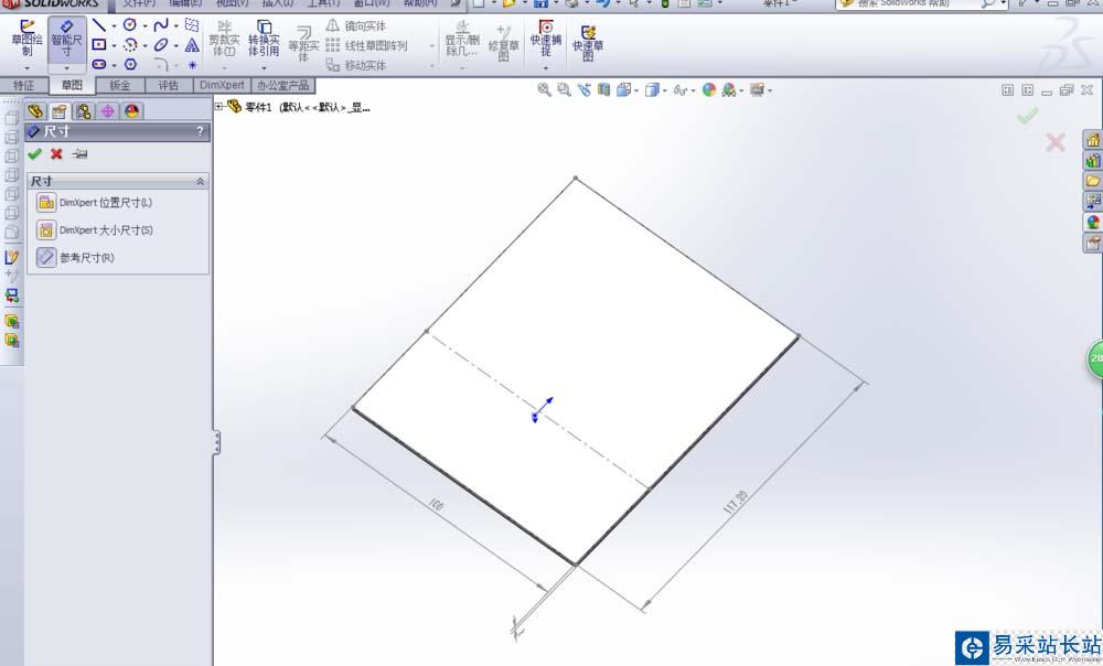 1、首先,在鈑金模塊隨意畫一個開放零件圖。(我畫的是80x40x2,取k因子0.45,折彎內半徑R0.5)