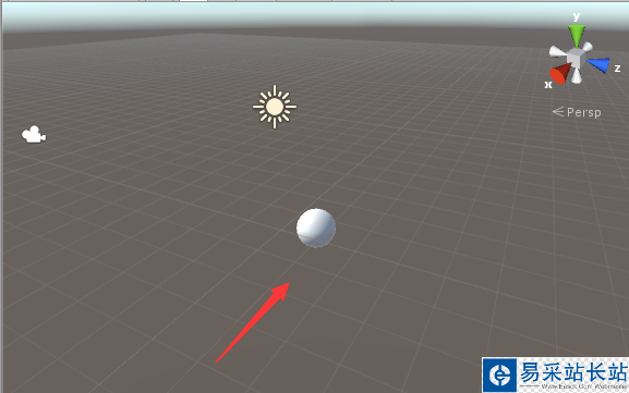 4、點擊sphere選項,在scene內就創建了一個sphere物體,如圖所示: