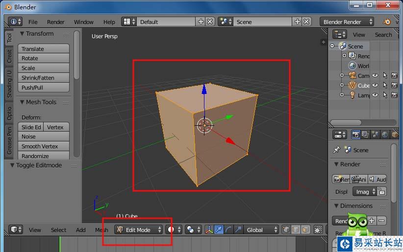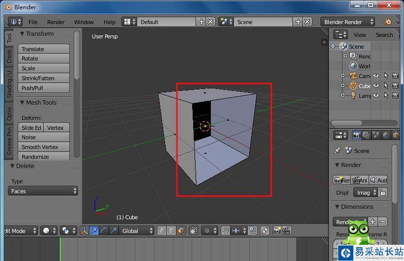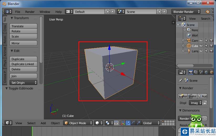 1、打開(kāi)blender創(chuàng)建一個(gè)立方體。