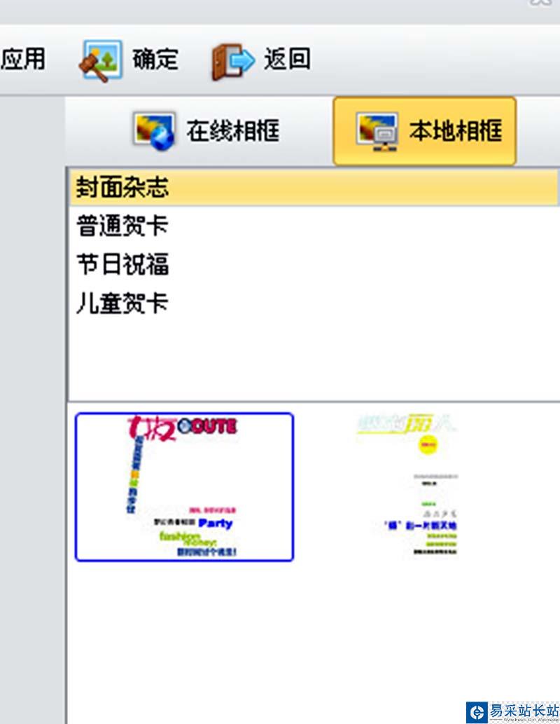 5、在相框合成框中單擊本地相框下的封面雜志,選擇圖標(biāo)單擊。
