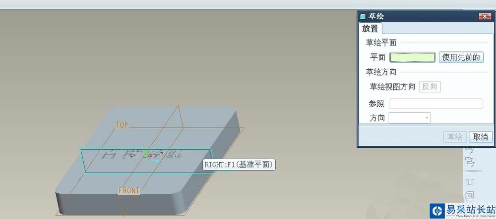 3、選擇“參考平面”,你需要的旋轉的界面,點擊“草繪”