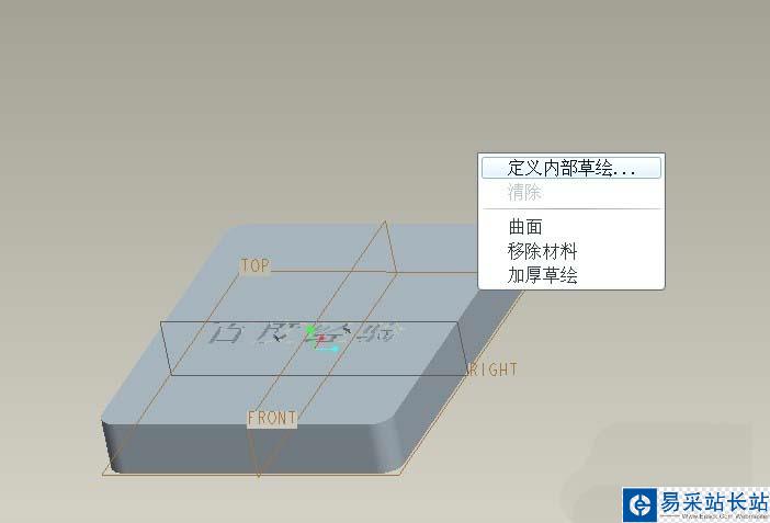 2、鼠標右鍵長按-選擇“定義內部草繪”。