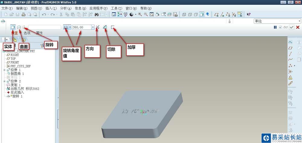 proe5.0的旋轉與proe4.0的旋轉還是有區別的,下面給大家講述下proe5.0旋轉命令怎么用。