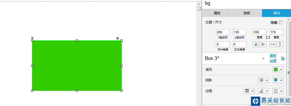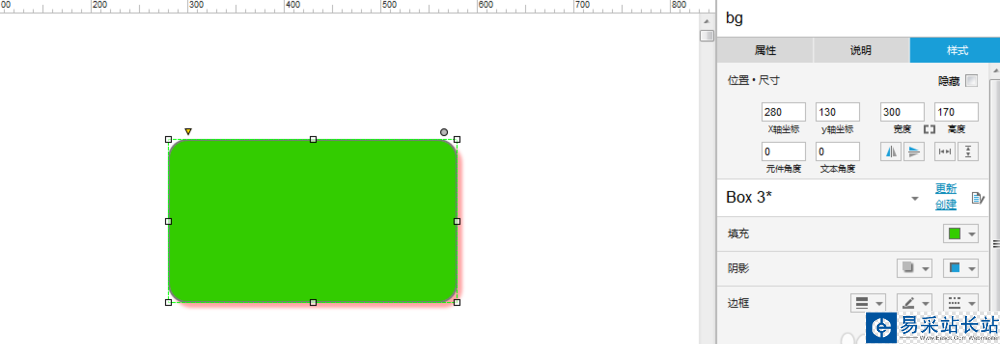利用Axure RP 8設計軟件實現以下場景:橢圓角矩形、綠色填充,有陰影和文字加粗。