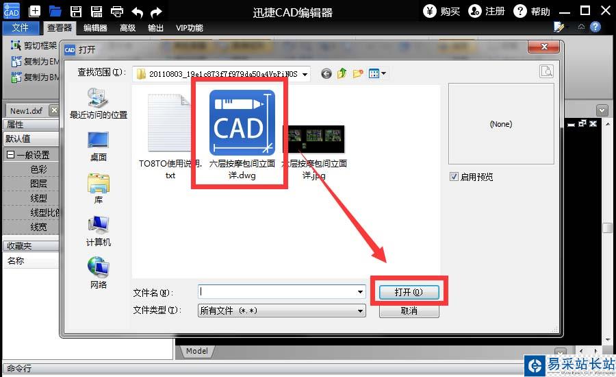 4、里面有可以打開的CAD圖紙文件,選中以后再點擊下方的“打開”按鈕。