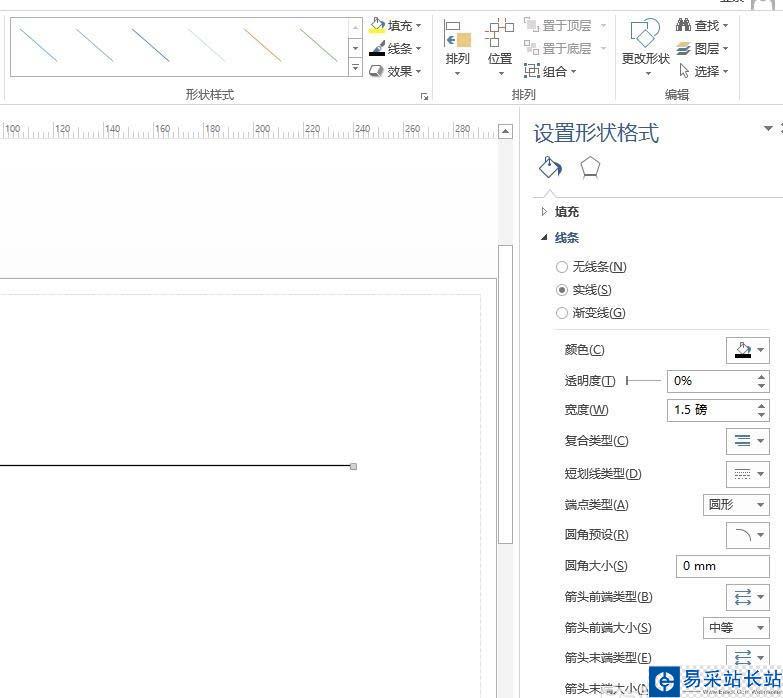 4、先畫一條母線,畫好后選中它,在上方線條一欄選中線條選項。在這個選項里面可以設置線條顏色、粗細等尺寸。非常方便實用。