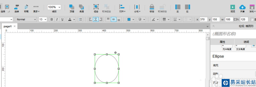 1、打開Axure RP 8設計軟件,在基本元件中拖曳一個橢圓形,修改其高度和寬度為120×100,如下圖所示: