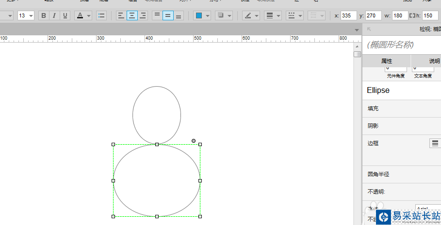 2、再次拖曳一個橢圓形到畫布上,修改寬度和高度為180×150,如下圖所示: