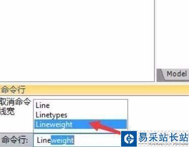 6、接下來就可以在界面的最下方顯示“命令行”界面,在此輸入“lineweight“并按回車鍵,就可以選擇顯示或隱藏線寬了。