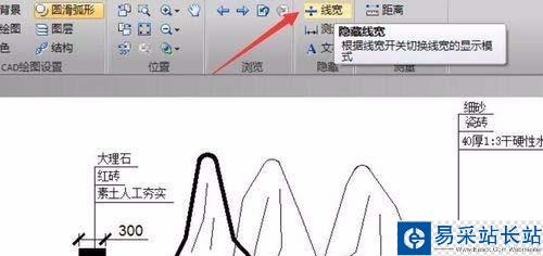3、如圖所示,在默認情況下,我們可以看到線寬,由于線寬的顯示,可能造成無法正常查看有關圖紙的更多細節部分。
