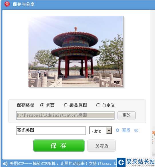 美圖秀秀是一款免費(fèi)的圖片處理軟件,它也具有強(qiáng)大的圖片編輯功能,操作簡單易學(xué)。用美圖秀秀能做出非常優(yōu)秀的圖片。下面是用美圖秀秀制做亮光美景效果圖片?