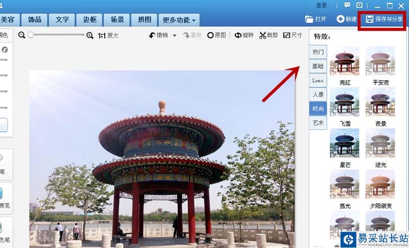 7、打開美圖秀秀軟件中單擊保存與分享。