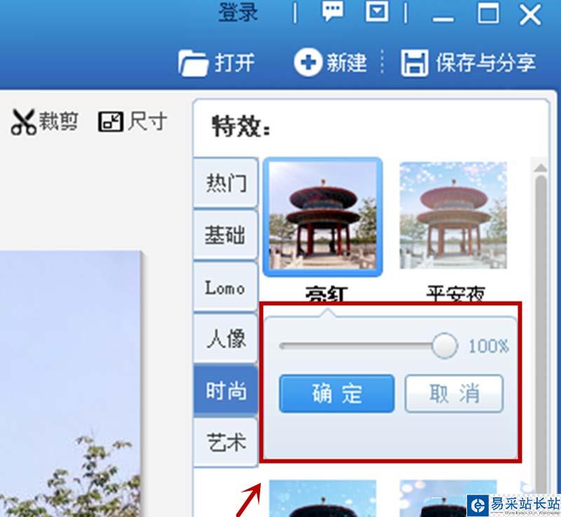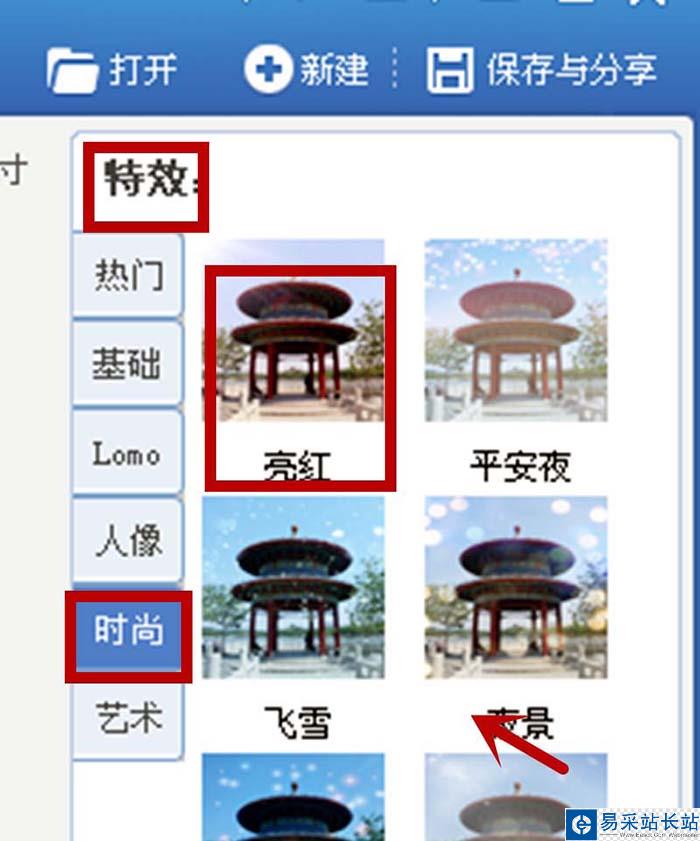 5、在單擊特效下的時尚。在時尚中選擇亮光,單擊。