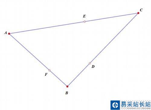 1、先繪制△ABC,要求A、B、C是平面上的自由點(diǎn),這樣,可以保持作圖的一般性,便于手動(dòng)操作和觀察;D、E、F分別是線段BC、CA、AB上的半自由點(diǎn)。