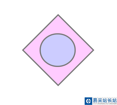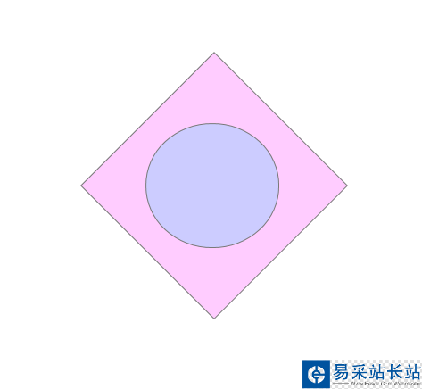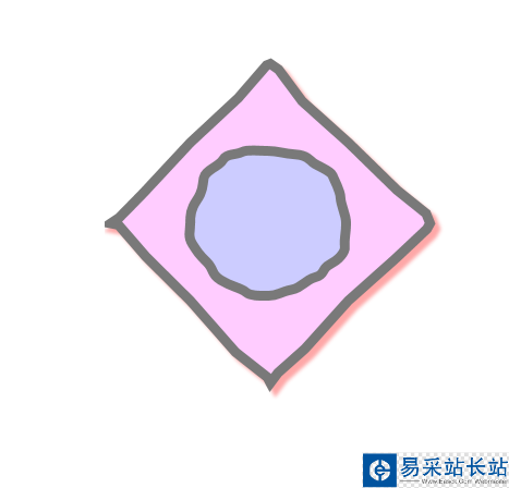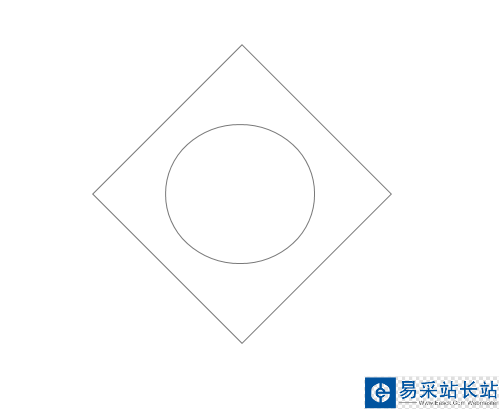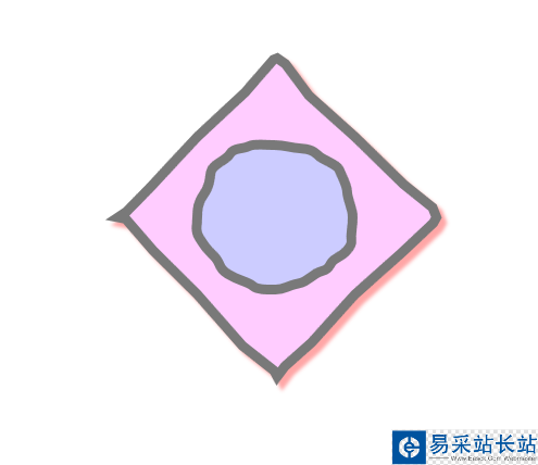 3、然后再次拖曳一個“橢圓形”到菱形內部,讓其放在中心位置,如下圖所示: