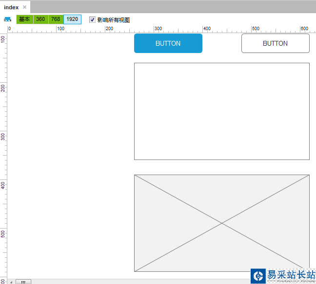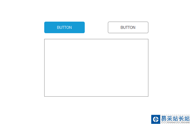 2、再次在基本元件里拖曳兩個按鈕到畫布上,放在矩形框上方,如下圖所示: