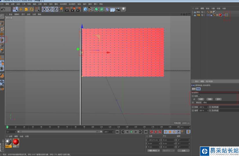 6、接下來就是要將在、旗幟綁定在旗幟上,以免旗幟飄跑,給平面添加布料綁帶,然后將平面調整到點模式,然后選擇和旗桿比較近的點,然后將圓柱拖到布料綁帶的綁定里,然后點擊設置,這樣就可以將你選擇的那個點綁定到旗桿上了。接下來可以重復的步驟,多綁定幾個點。
