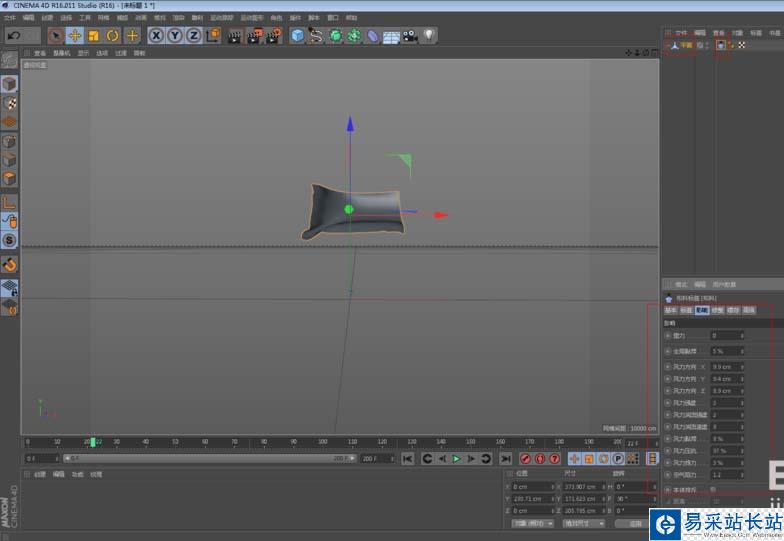3、接下來,就是對布料標簽的參數做進一步的調整。播放觀看,你可能會覺得旗幟飄著就跑遠了,這個待會再做進一步的調整。