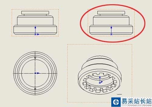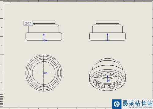 6、這樣,我們就可以看到,圖中三維視圖與二維圖在水平和垂直方向都已經對齊,此工程圖既顯得美觀,又清晰分明,方便閱圖者觀看。