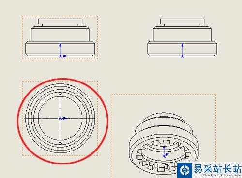 3、鼠標左鍵單擊二維俯視圖,可以看到工程圖中三維圖與俯視圖已經水平對齊,如下圖